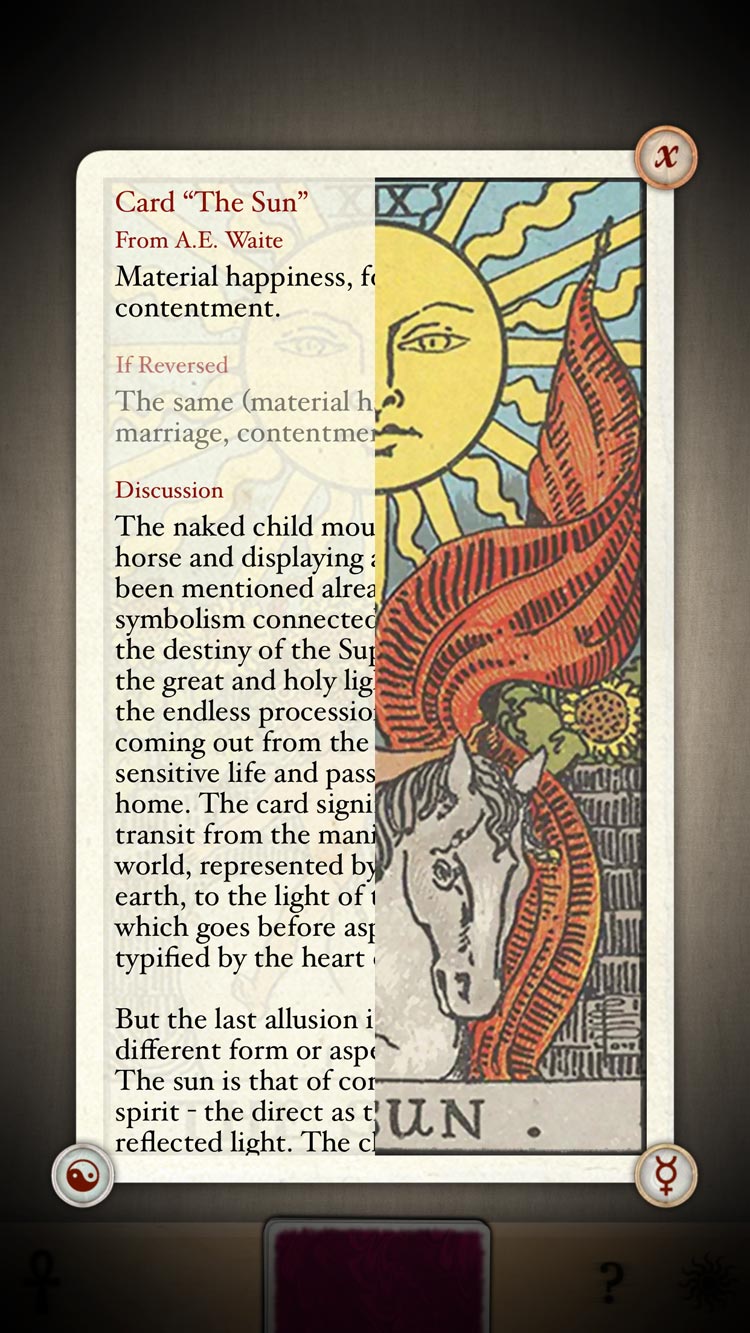 A truly beautiful tarot app: browse through four decks, use nine spreads, read historic meanings or write your own, and customize your reading experience.