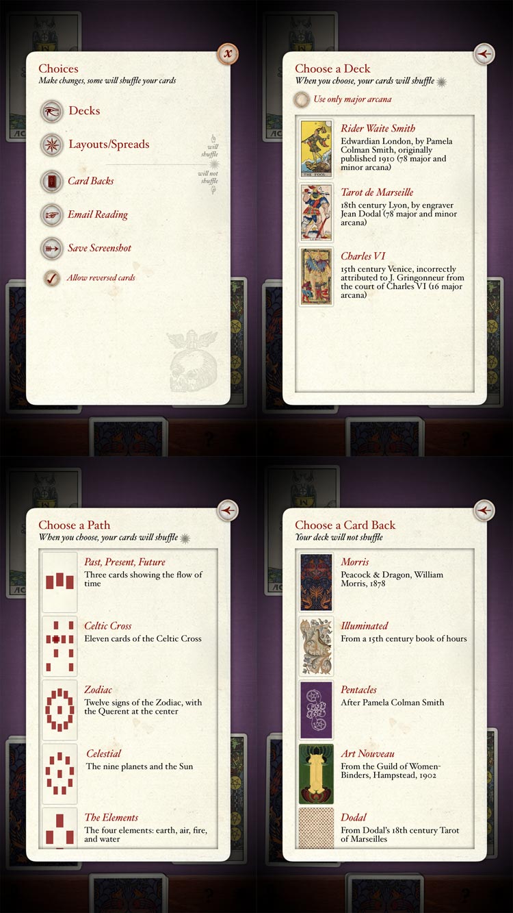 Beautiful Tarot is designed to run on devices of any size, including iPads; the videos below were recorded on an iPhone.